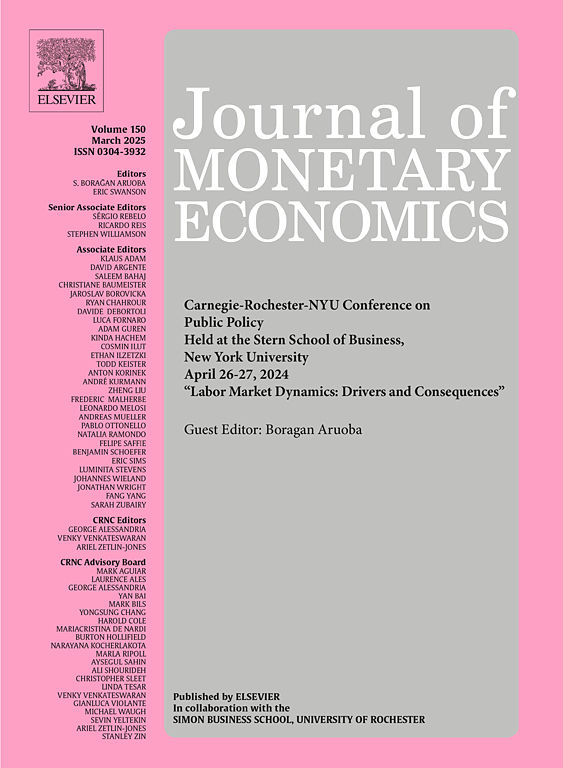 《货币经济学杂志》(Journal of Monetary Economics)创刊于1975年,由Elsevier出版,是经济学领域的核心期刊之一,每年出版十次,文章涵盖了对广泛现代宏观经济主题的重要研究贡献,包括经验、方法和理论方面的研究成果。